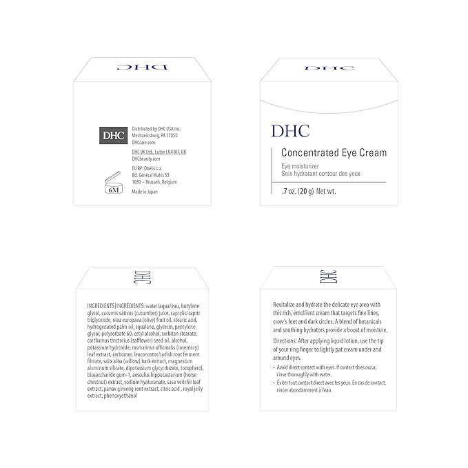 - DHC Concentrated Eye Cream is a deeply hydrating and soothing eye cream that targets fine lines, crow's feet, and dark circles.
