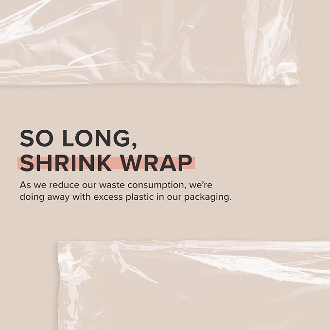 - SUSTAINABLE PACKAGING: As part of our pledge to the planet, we’re removing extra plastic from packaging, like shrink wrap.