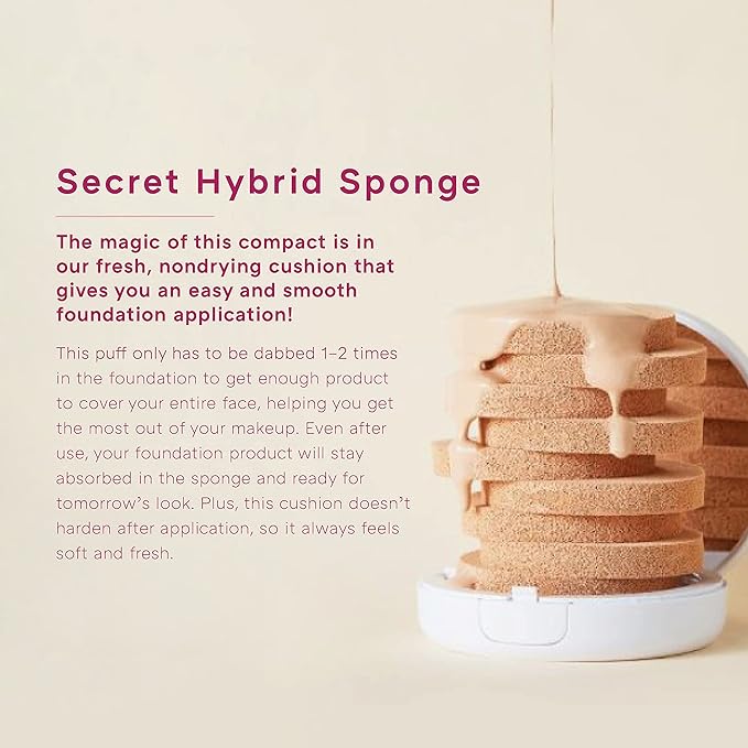 - IMPROVED ADHERENCE CUSHION: Magic fit powder is cleanly layered on top.