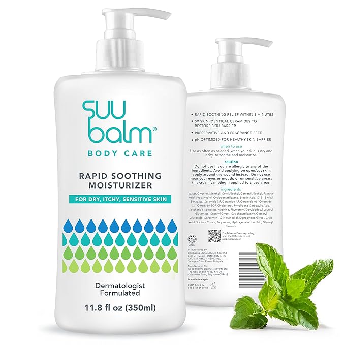 - [Fast itch relief in 5 mins]: With Suu Balm’s menthol-based cream; soothes eczema, psoriasis, dermatitis, pruritus, prickly heat, rashes, and dry skin naturally. It's the best thing for itchy skin.