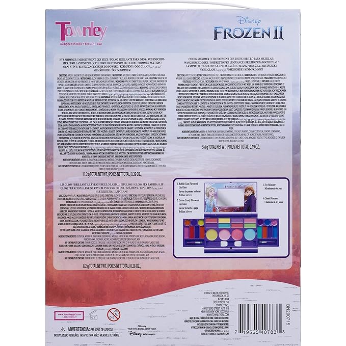 Disney Frozen Elsa Anna Cosmetic Compact Set with Mirror 22 lip glosses, 4 Body Shines, 6 Brushes Colorful Portable Foldable Washable Makeup Beauty Kit Box Set for Girls Kids Toddler
