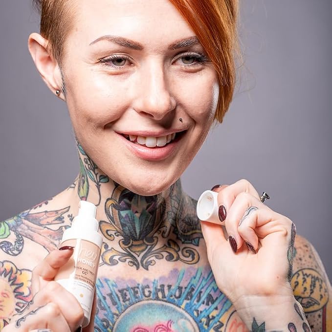 - Recommended Uses For Product : Daily Makeup Routine: Use as a lightweight alternative to foundation for everyday wear, providing natural-looking coverage and hydration., Gentle Coverage for Sensitive Skin: Provides lightweight, non-irritating coverage that’s ideal for concealing redness without exacerbating sensitivity., Moisturizing Base: Acts as a hydrating layer for those with dry or combination skin, offering long-lasting comfort., No-Makeup Look: Perfect for achieving a radiant, "barely-there" finish that enhances your natural glow., On-the-Go Touch-Ups: Compact and convenient for quick skin fixes throughout the day., Post-Treatment Recovery: Suitable for use after non-invasive skin treatments, helping to mask redness and nourish the skin as it heals., Redness Neutralizer: Helps reduce the appearance of skin redness caused by conditions like rosacea, delivering a calm and even complexion., Sensitive Skin Care: Suitable for soothing and calming irritated or acne-prone skin due to its honey and propolis infusion., Skin Tone Correction: Ideal for evening out skin tone, neutralizing redness, and concealing minor blemishes., Sun Protection: Use as part of your morning routine to protect skin from harmful UV rays with built-in SPF. Daily Makeup Routine: Use as a lightweight alternative to foundation for everyday wear, providing natural-looking coverage and hydration., Gentle Coverage for Sensitive Skin: Provides lightweight, non-irritating coverage t… See more