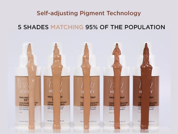 - Self-Adjusting Triple Pigment Technology: Powered by innovative self-adjusting triple pigment technology, Hey Honey CC Cream adapts seamlessly to your unique skin tone. With just five versatile shades, this revolutionary formula matches 95% of the population, ensuring a perfect match for almost everyone.