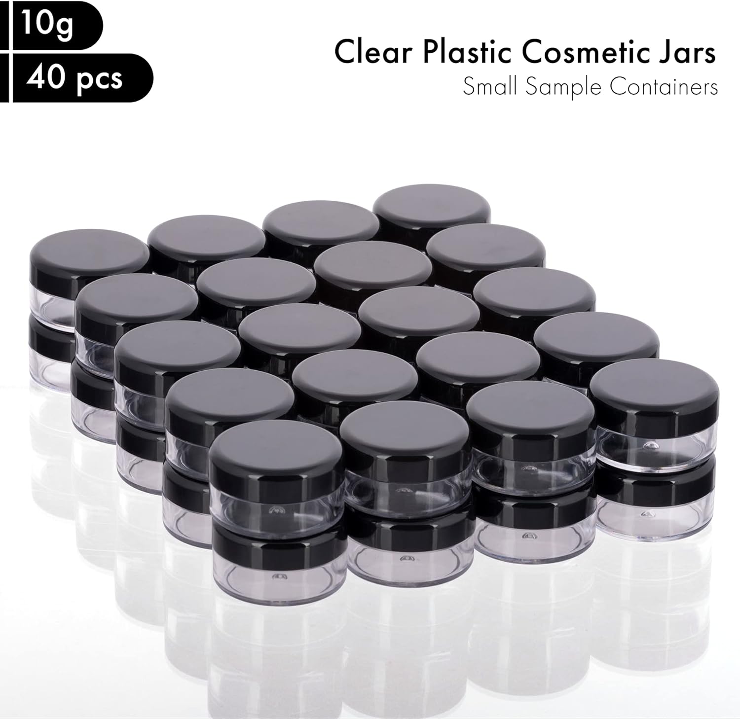 40Pcs 10 Gram Plastic Cosmetic Containers with Lids for Lotion, Creams, Toners, Lip Balms, Makeup Samples Jars BPA free (10g-40pcs, black)