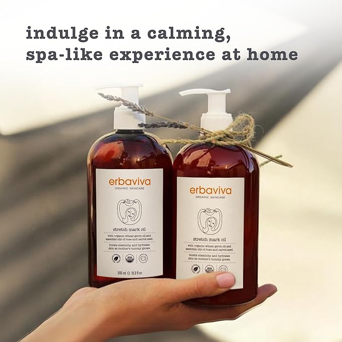 Erbaviva Organic Stretch Mark Oil for Pregnancy, Stretch Marks & Scars - 16 Fl Oz
