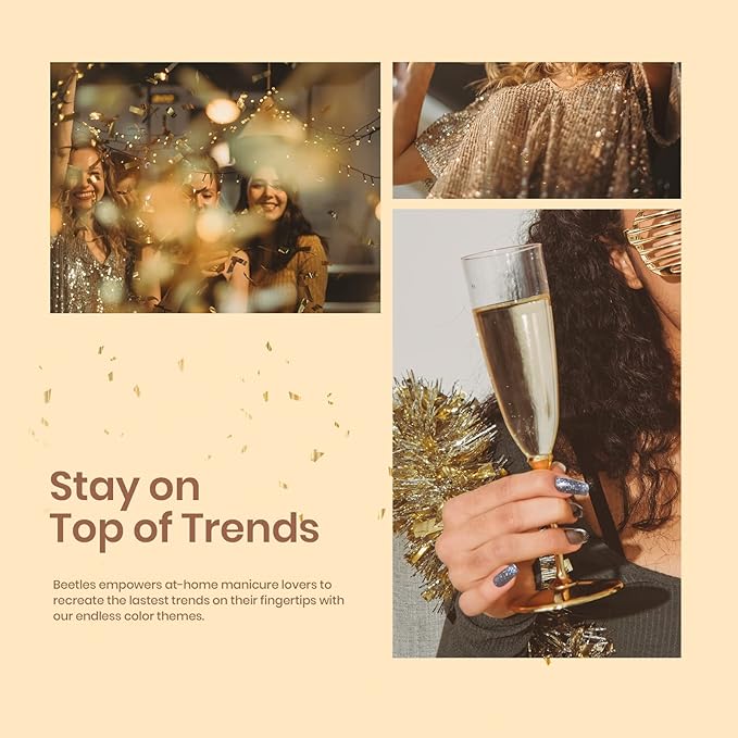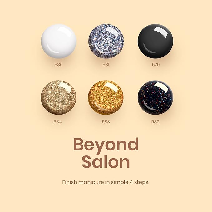 - Beetles Gel Polish: (6*7.5ml/6*0.25fl.oz) - the CHAMPAGNE TOAST Set - A classic Summer gel polish set with silver gold glitter gel nail polish that states ringing with our NEW gel nail polish set! The milky white black sparkly gel polish kit includes shades of rainbow black sparkling and a touch of Gold Glitter for the perfect Holiday Carnival Manicure. It is the ideal choice for gifts. Color Numbers are: 579-580-581-582-583-584.