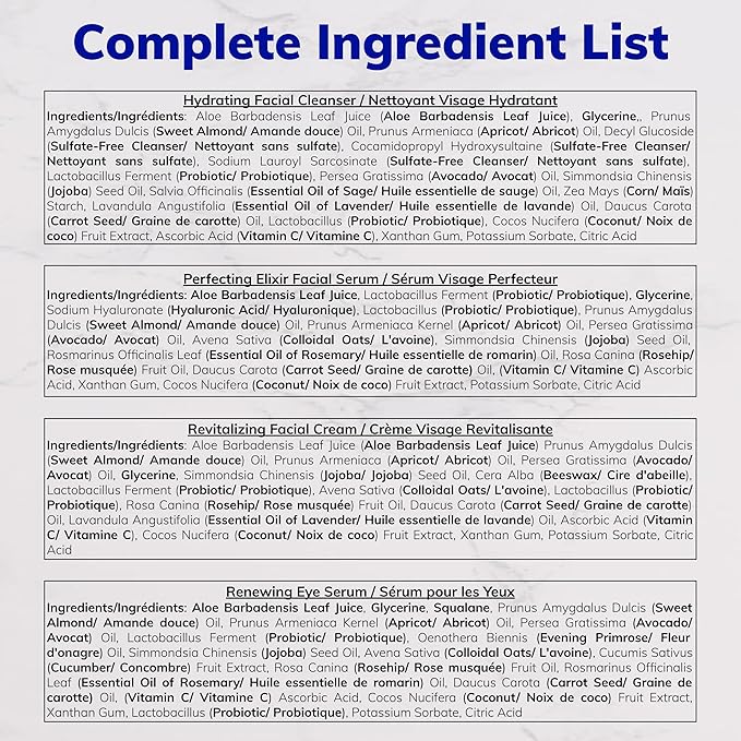 Full-Size 4-Piece Set | Handcrafted, Natural, Anti-Aging Formula | Facial Cleanser + Perfecting Serum + Facial Moisturizer + Eye Serum | All Skin Types | Women & Men ($165 Value)