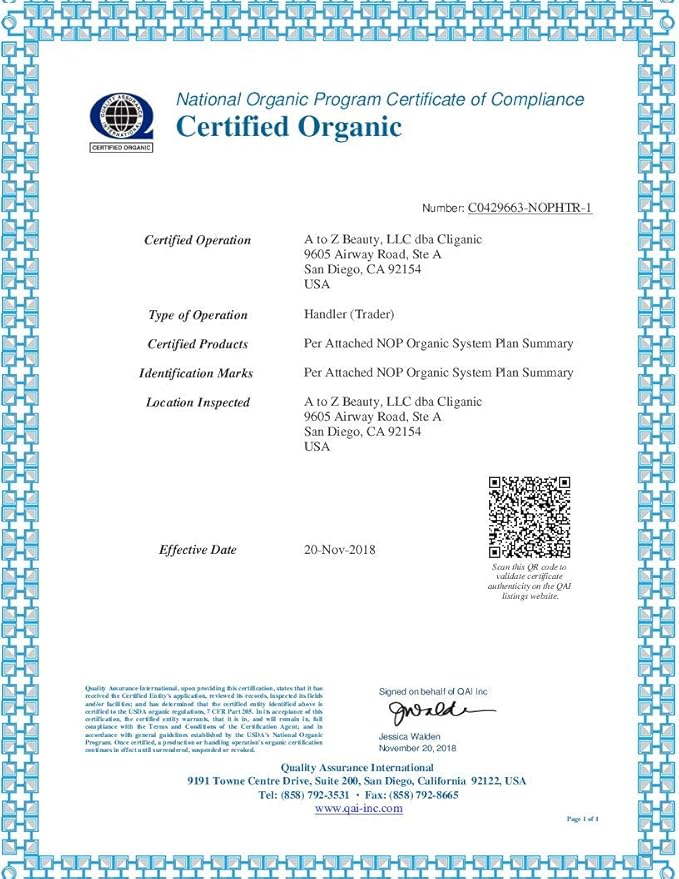 - Certified Organic Argan Oil - Cliganic organic argan oil is proudly USDA organic certified to ensure ultimate quality and integrity.