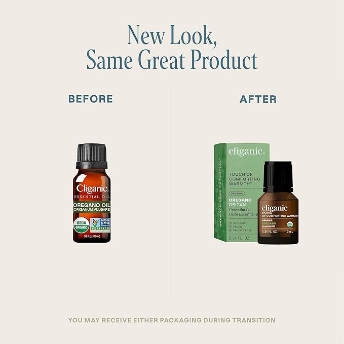Cliganic Organic Oregano Essential Oil, 100% Pure Natural for Aromatherapy | Non-GMO Verified (Packaging May Vary)