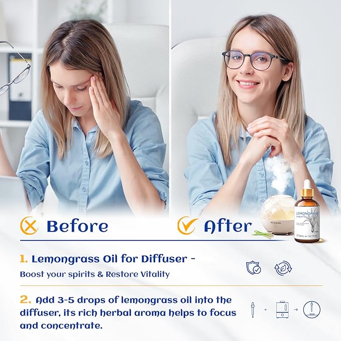 - Multi-Purpose: Lemongrass essential oil has a multi-purpose natural remedy with a refreshing aroma that can help relax the mind, freshen the air, clean the house