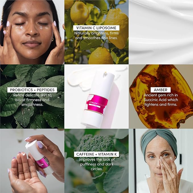 - KEY ACTIVES: Vitamin C Liposome Illuminates + Smooths Fine Lines. Amber, Caffeine, + Vitamin K Tighten, Depuff + Firm, With Probiotics + Peptides To Refine Delicate Under Eye Skin.