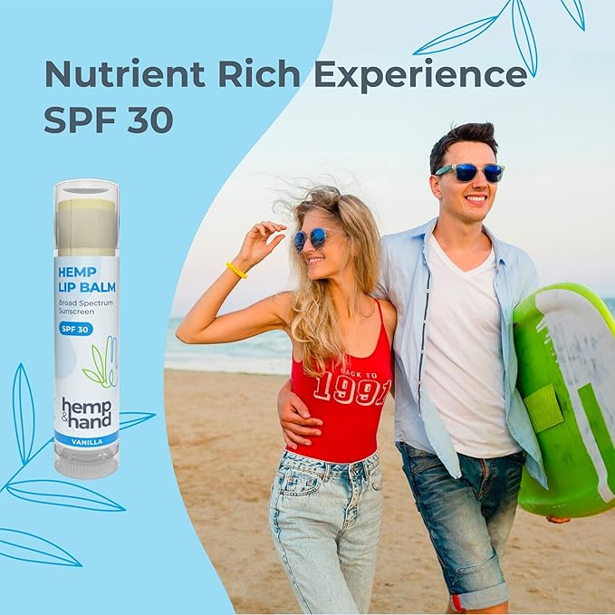 Organic Vanilla Hemp Lip Balm with Beeswax, Coconut Oil and Vitamin E - SPF 30 - by Hemp and Hand (1-Pack)
