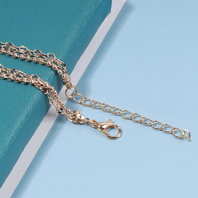 Boho Layered Necklace Choker Gold Lace Chain Necklace Shimmer Shinny Necklace Vintage Multilayer Beaded Necklace Jewelry for Women and Girls
