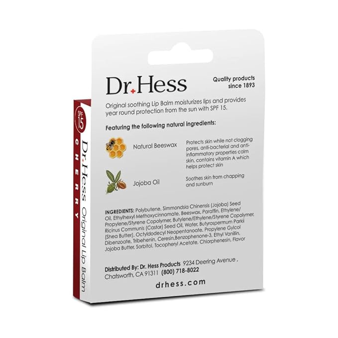 - Immediate Relief for Chapped Lips: Our Udderly Soothing Lip Balm, based on the original Dr. Hess healing formula, is specifically designed to help provide instant relief for dry to severely chapped lips; Enriched with Jojoba, Beeswax, and Shea Butter, and Paraffin, it effectively moisturizes and nourishes your lips, leaving them smooth and protected