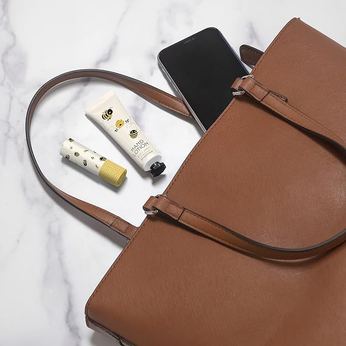Studio Oh! Lip Balm & Hand Lotion Set - Travel-Size Toiletries, 2-Piece Gift Set - Moisturizing, Portable - Buzzy Bees