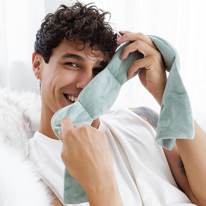 - PREMIUM MATERIALS: The comfortable sleep mask features breathable jersey cotton on one side and plush microfleece on the other. It is filled with BPA-free microbeads, and all materials are OEKO-TEX certified and gentle on skin.