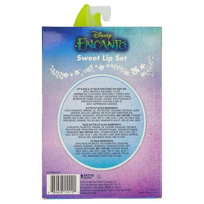 - FLAVORED GIRLS’ LIP SET: Feel extra sweet with this Encanto Sweet Lip set packed with fun lip gloss and balm for girls. You’ll love the taste and look of our officially licensed Encanto merchandise.