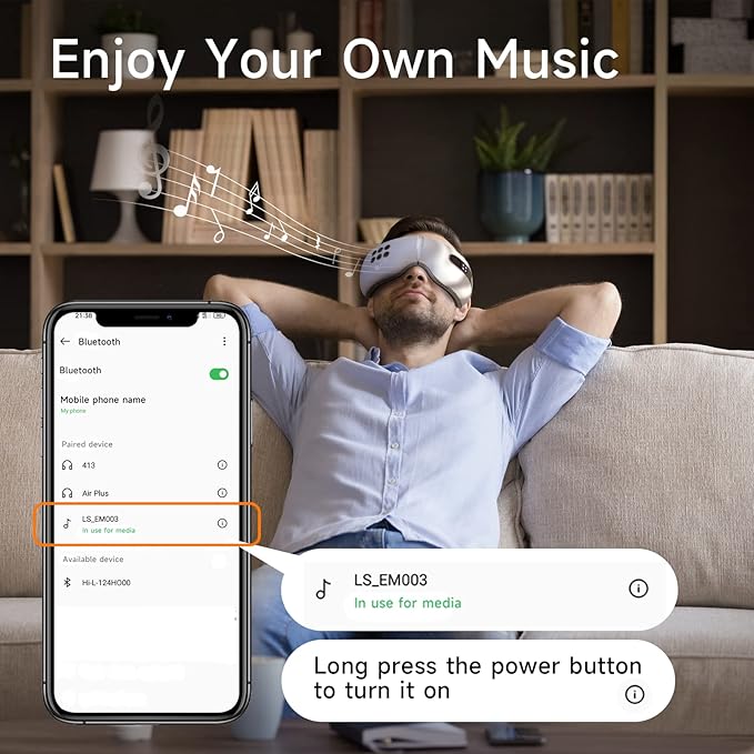 - 🎵【Ergonomic Design with Music】 The heat cooling bluetooth smart eye massager adopting groove design to care for eyeballs, dry eyes, the electric heated eye massager uses a combination of massage techniques with soothing music, relaxed air pressure, skin-friendly leather material and adjustable headband, fits most faces and comfortable to wear.