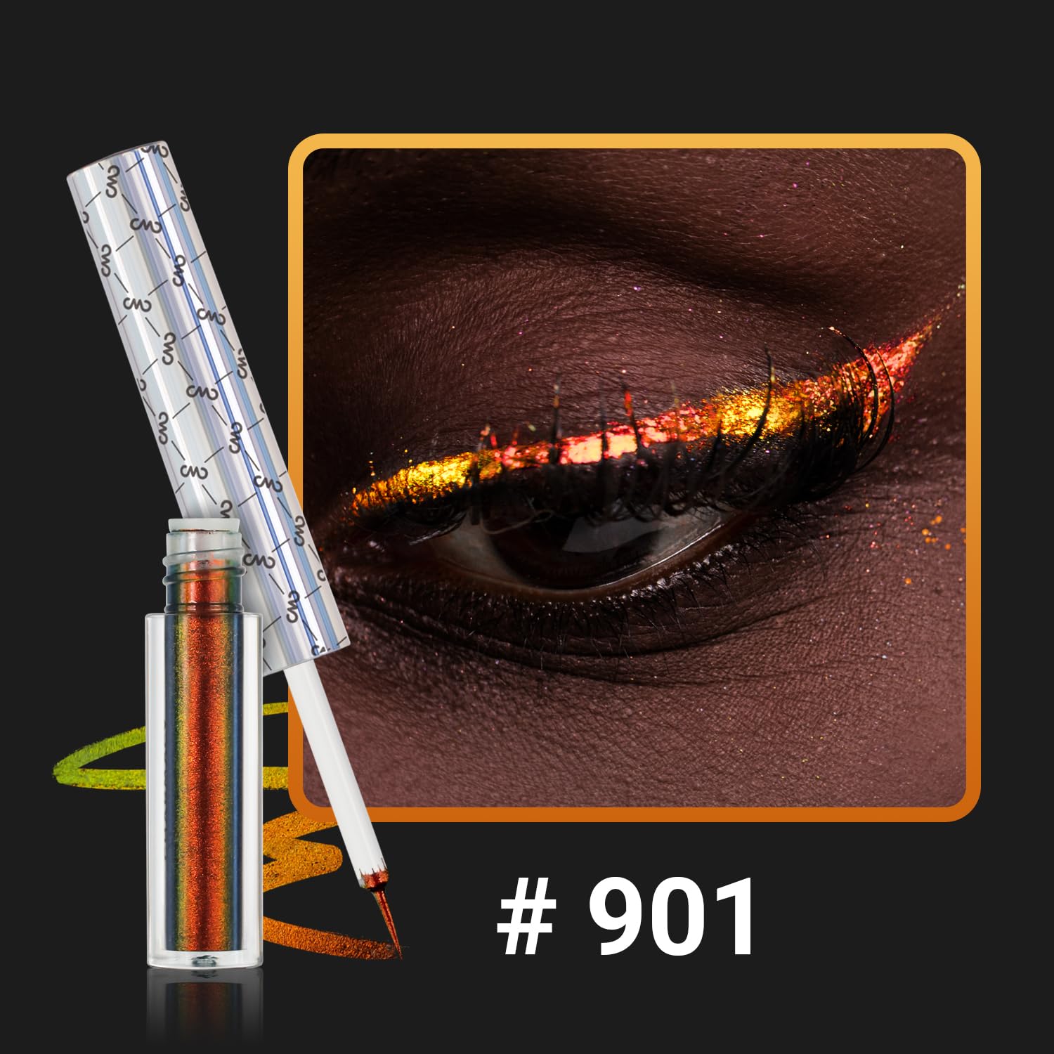 CHARMACY Chameleon Liquid Glitter Eyeliner, Highly Pigmented, Metallic Intense MultiColor Shifting waterproof Eyeliner, Ultra-Fine Tip, Longwearing, Smudge-proof,BROWN GOLD GREEN 901