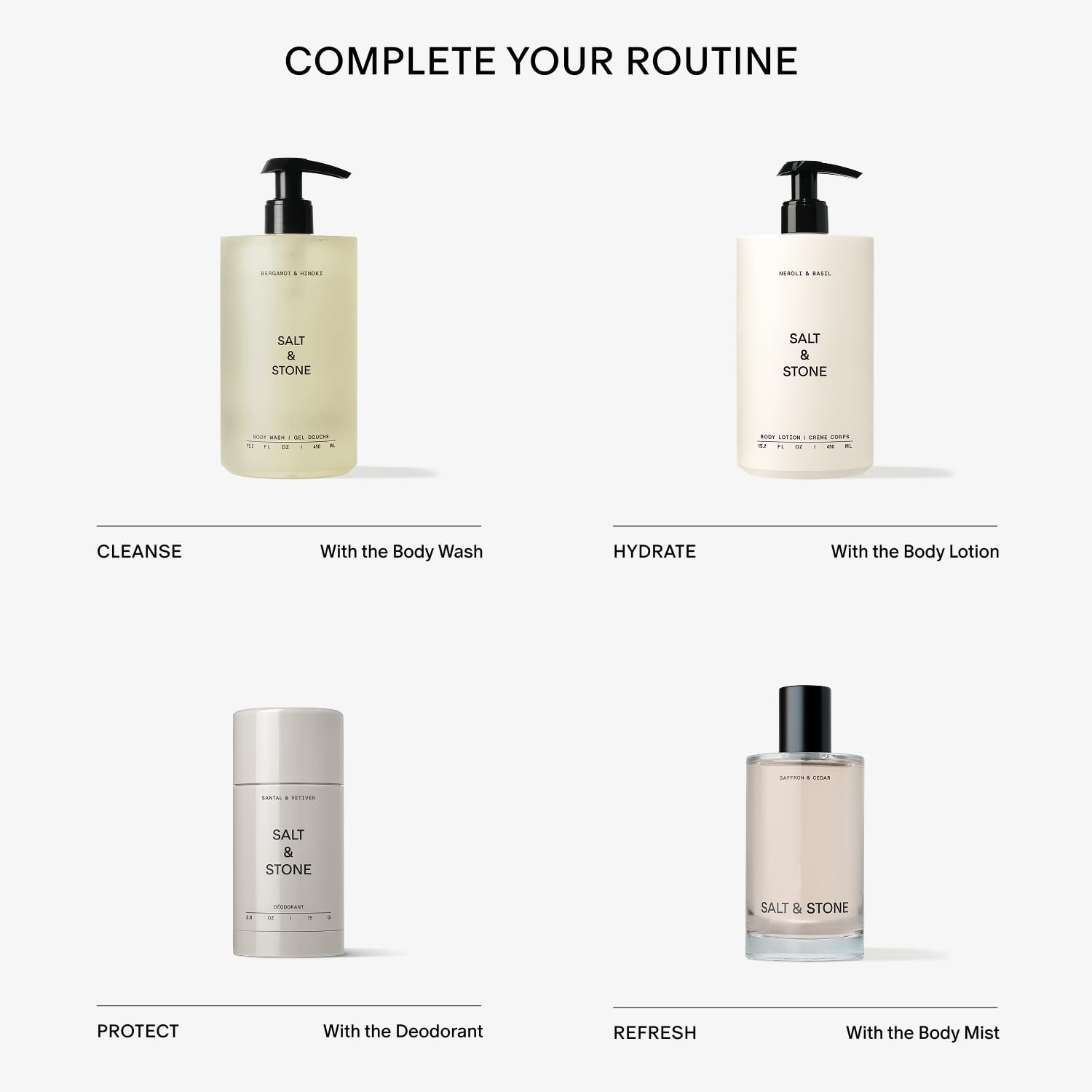- Iconic Scents — Discover three signature scents: warm, woody Santal & Vetiver; crisp, green Neroli & Basil; and citrus, woody Bergamot & Hinoki.