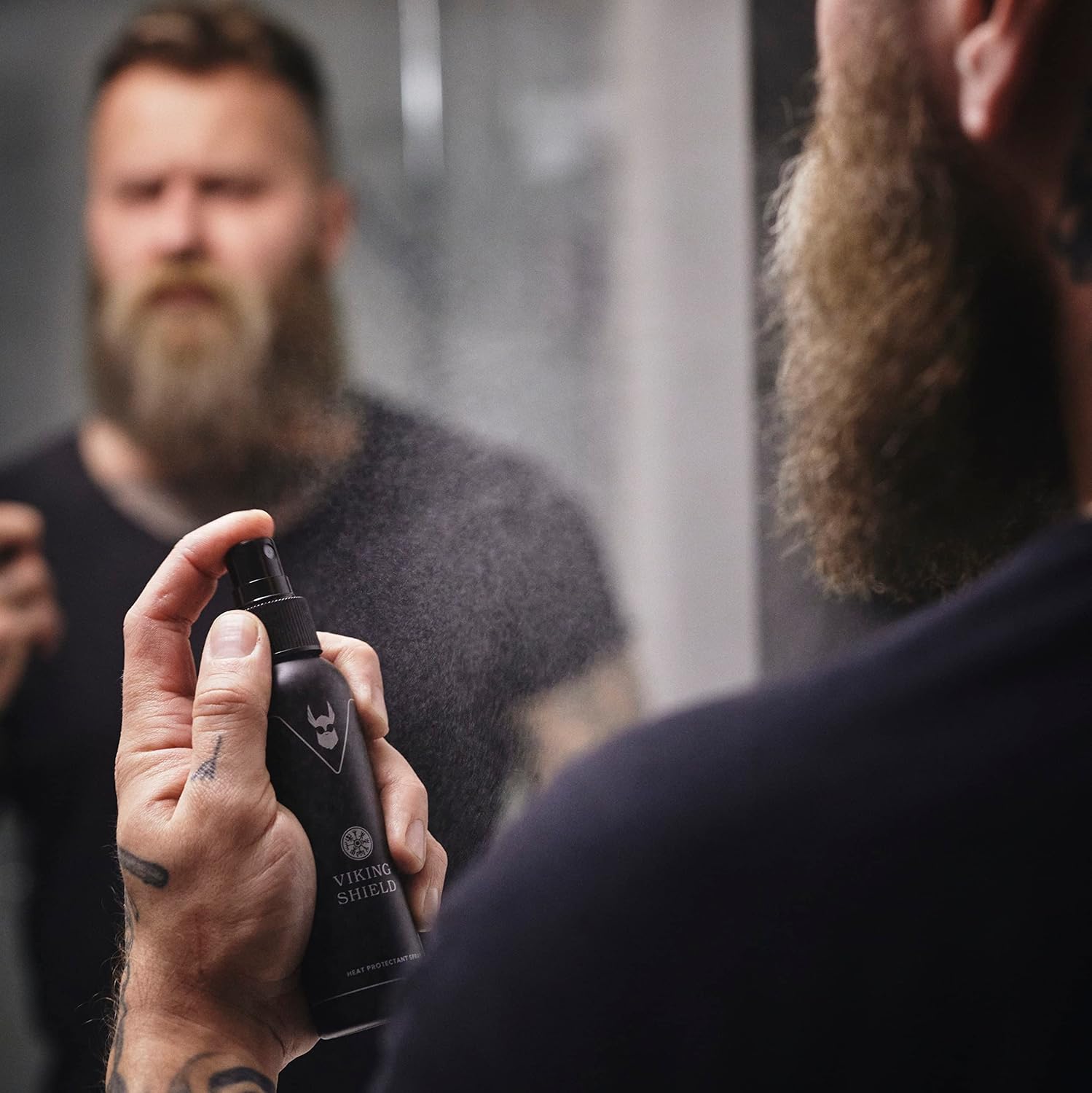 - Guards against heat damage! Introducing the first-ever 100% natural beard & hair shield against heat damage – our new Viking Shield Heat Protectant Spray! We are confident that our beard spray will help shield your beard against damage and will be a great addition to your daily routine.