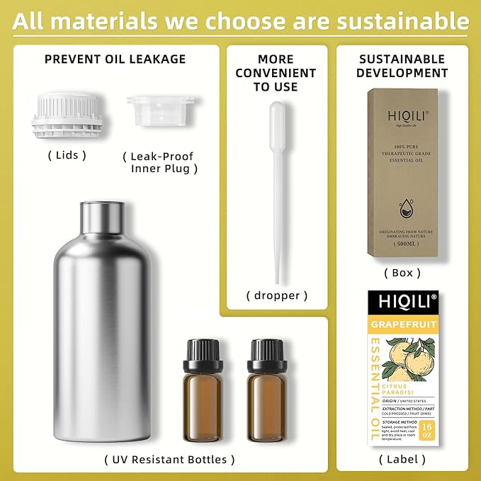 HIQILI 16 Fl Oz Grapefruit Essential Oil, for Diffuser, Skin Care, 100% Pure and Natural