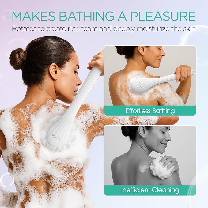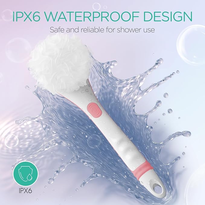 - IPX6 waterproof design - The machine uses rubberized silicone to ensure waterproof , allows conveniently using in shower. Ergonomically design, easy to grab. The long handle design allows you to easily clean hard-to-reach places. Non-slip design prevents it from falling off.