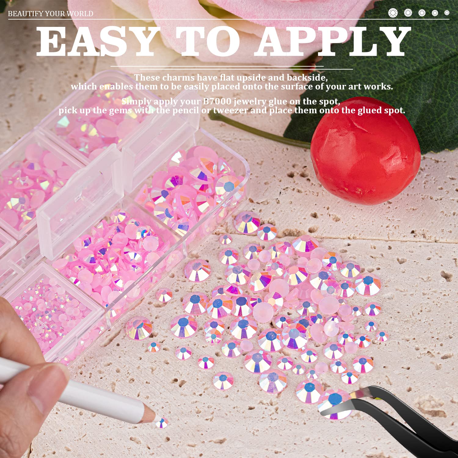 - 💎TIPS FOR USE -- Non-hot fix jelly flatback gemstones require adhesive for nail art, crafts, or artwork design. We recommend using B7000 rhinestone jewelry glue for DIY projects and UV / quick dry nail glue for nail art. To apply the resin rhinestones, first, clean the surface of your nails or the crafts you wish to embellish. Then, apply the rhinestones with the appropriate glue and wait for them to dry. (Please note that glue is not included.)