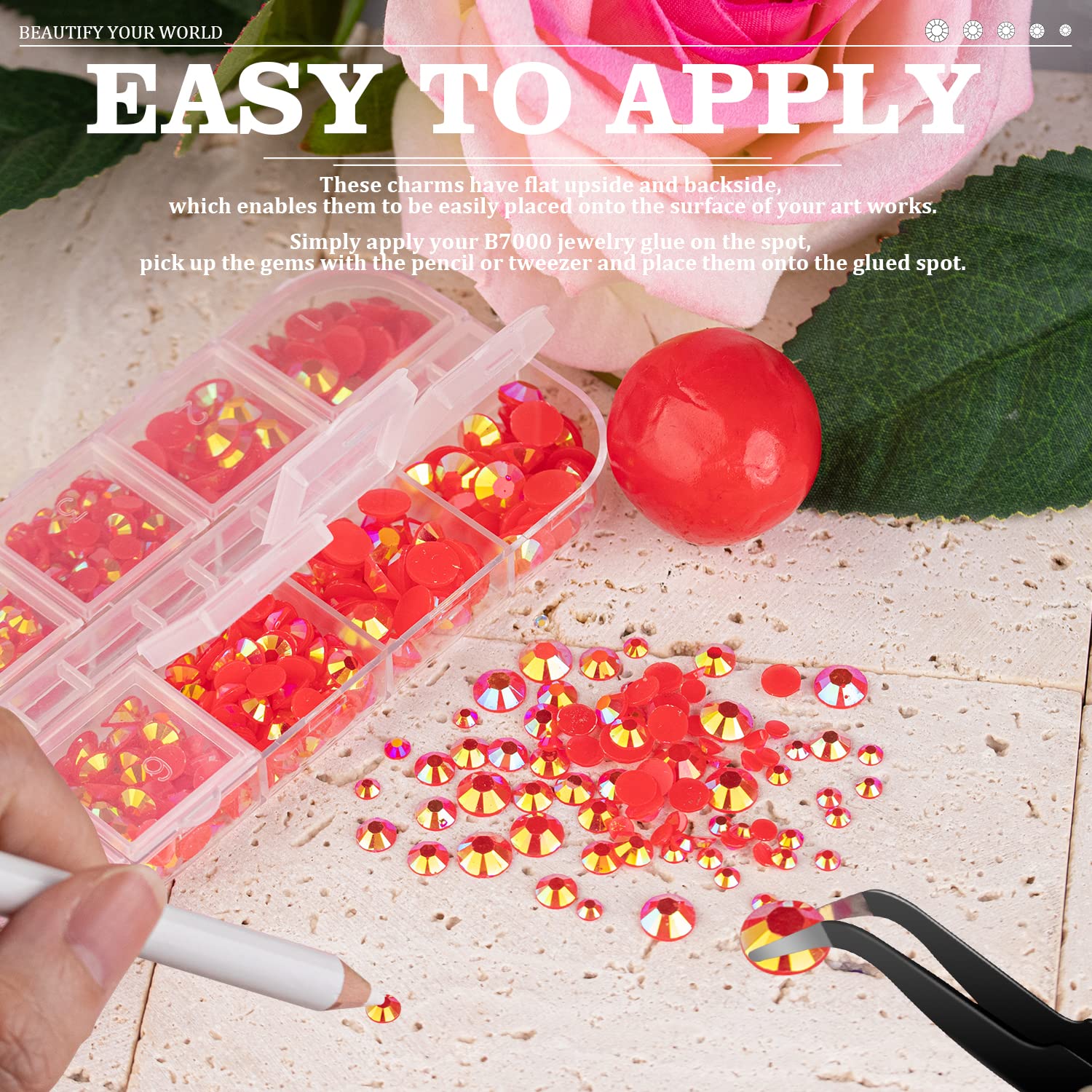 7000PCS Resin Rhinestones with Tweezers for Crafting, 2/3/4/5/6mm Flatback Jelly Rhinestones, 4 Box Red AB Non Hotfix Crystal Gems for DIY Crafts Mugs Tumblers Clothes Makeup Nail