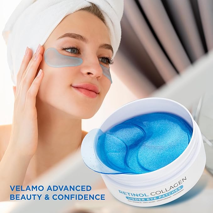 - 🌟 The Retinol & Collagen Eye Patches For Puffy Eyes - VELAMO ADVANCED 24k Gold Under Eye Patches For Dark Circles And Puffiness works great for younger-looking, brighter, and well-rested eyes. Our Under Eye Mask Patches address 3 major eye concerns - Puffiness, dark circles & wrinkles effectively and elegantly. Most importantly, it is safe for sensitive skin.