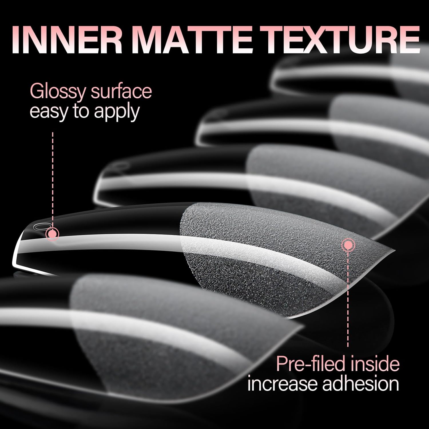 - Easy to Use: AILLSA's press on nails feature an inner matte texture and a thicker front edge and thinner back edge. This makes AILLSA nail tips more breathable, flattering, and reliable and eliminates the need to polish the surface and shape.
