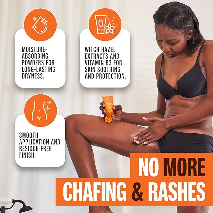 - LONG-LASTING CHAFE POWDER - Treat and protect delicate skin with this revolutionary super fine powder that absorbs sweat & stops odor. A shake in the morning or post shower will help prevent painful chafing all day long.