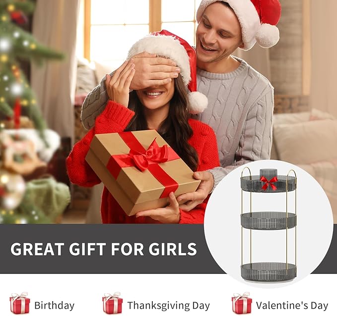 - 【Multi-functional Use】: The rotating storage box is suitable for vanity organization, perfume organizer, skincare organizer, bathroom organizer, nail polish organizer, etc. It can be placed on vanities, bedrooms, bathrooms, wardrobe cabinets, or countertops, and more.
