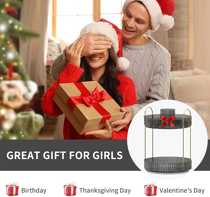 - 【Multi-functional Use】: The rotating storage box is suitable for vanity organization, perfume organizer, skincare organizer, bathroom organizer, nail polish organizer, etc. It can be placed on vanities, bedrooms, bathrooms, wardrobe cabinets, or countertops, and more.