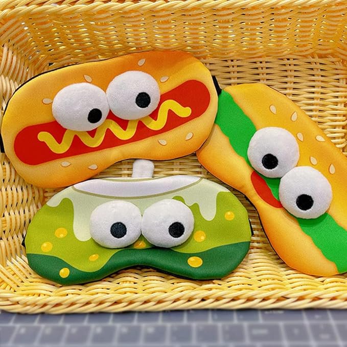 - 💗【Unique Fashion Cute Plush Eye Mask, Fall Asleep Quickly】The latest unique fashion design of cute hotdog, make you feel more different, good looking and sexy.It's best gift for your friends and lover.The fabric of faux fur have a perfect touch which can intimately cover your eye skin, never mind the allergy. Smooth, soft, and supper light, it's very very comfortable to wear.