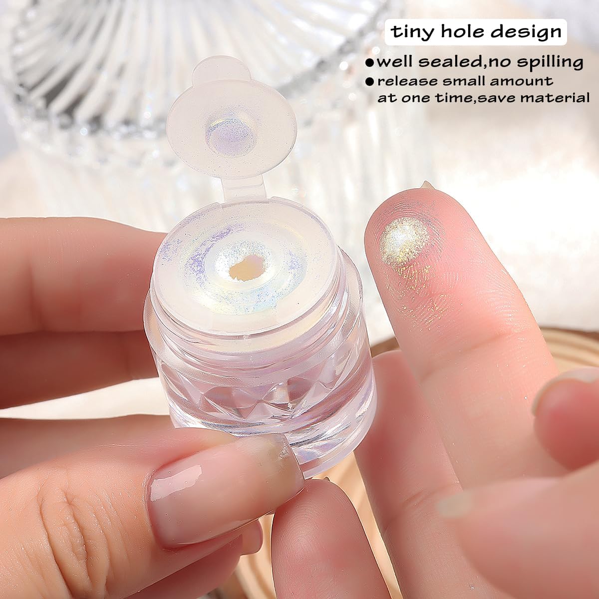 Unicorn Chrome Nail Powder, 1 Box Gold Aurora Powder, Iridescent Chrome Powder Metallic Mirror Effect Pigment, Fairy Powder Mermaid Glitter Dust Shell Pearl Nail Cromer Powder Manicure Dust