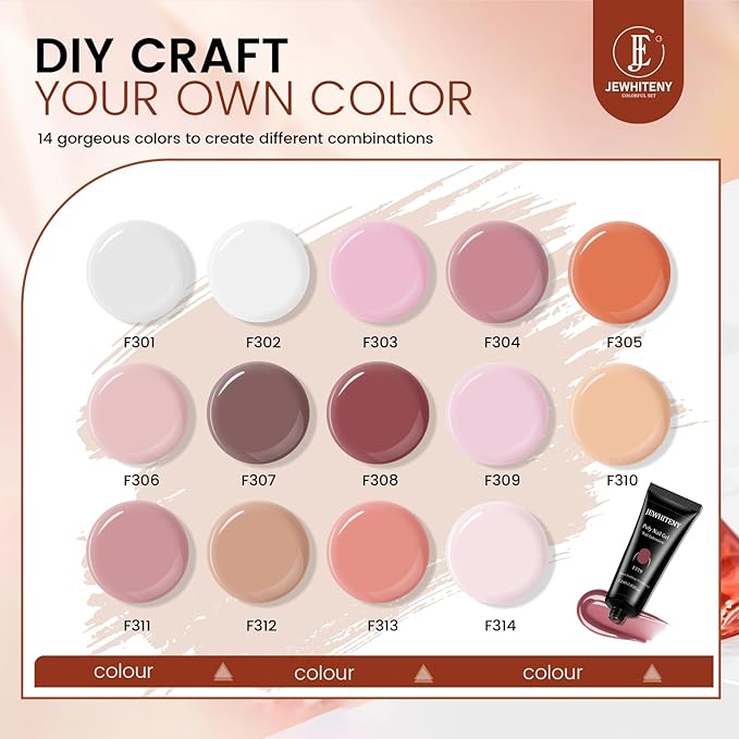 - Wide Range Of Applications And The Perfect Gift: JEWHITENY poly nail gel kits is perfect for creating a variety of stunning nail designs with rhinestone nails,dry flower and glitter , as well as nail art on press-on nails. This builder nail gel is suitable for creating different nail extension shapes, such as square, oval, coffin, and French nails.This poly extension gel nail kit is the perfect gift for all nail lovers.