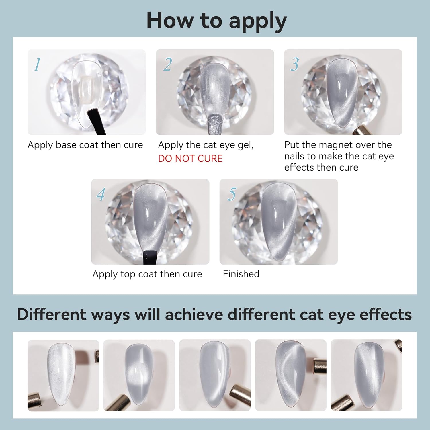 - 28 Days No Peel-off and Bubble-free: The moonlight cat eye gel nail polish is high gloss and smooth and has a mirror glass shine finish, it has more strong coverage, and would last for 28+ days under proper apply way