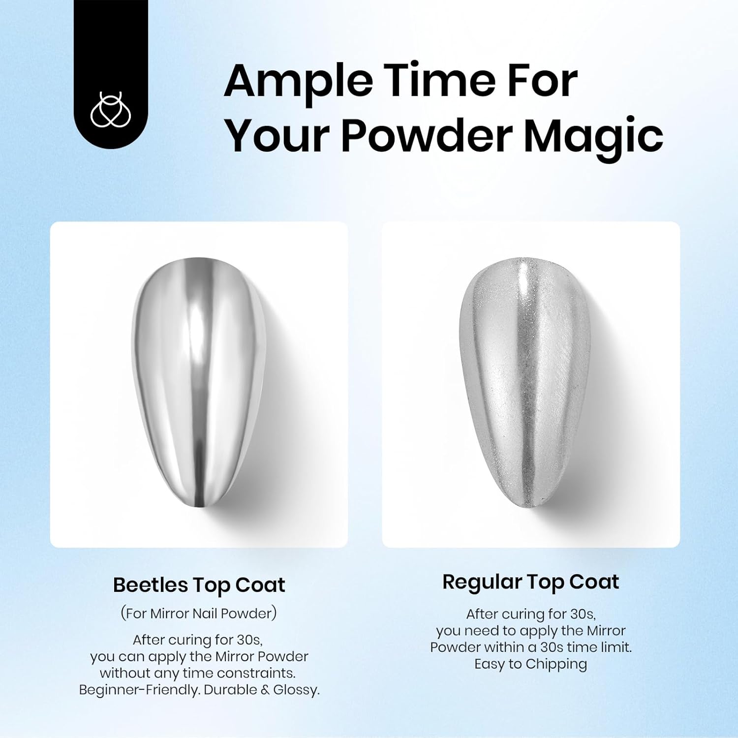 Beetles Chrome Top Coat Gel Nail Polish and Decoration Sealing Gel, 7.5ml*2PCS Chrome Nail Powder Shine Finish and Long Lasting, Soak Off LED U v Lamp Nail Art Design Diy at Home