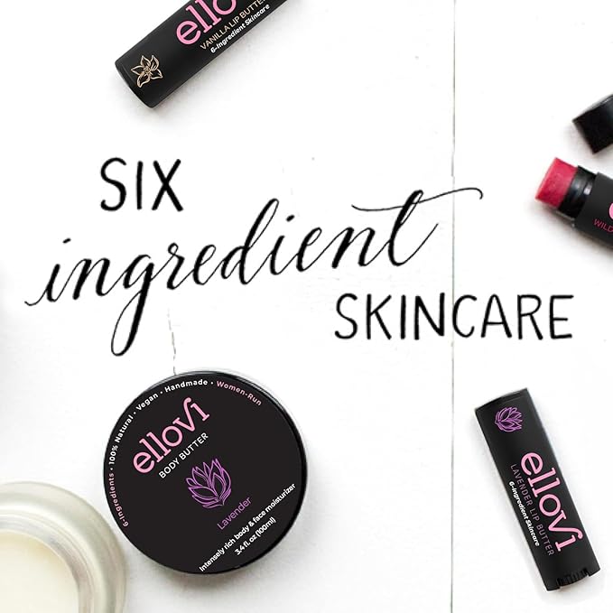 Natural Lip Butter Lip Balm - Lavender - Pure Enough to Eat - Made With Just 6 Vegan Ingredients - 100% Natural & Organic Moisturizing Lip Care for All Day Hydration (4-Pack)