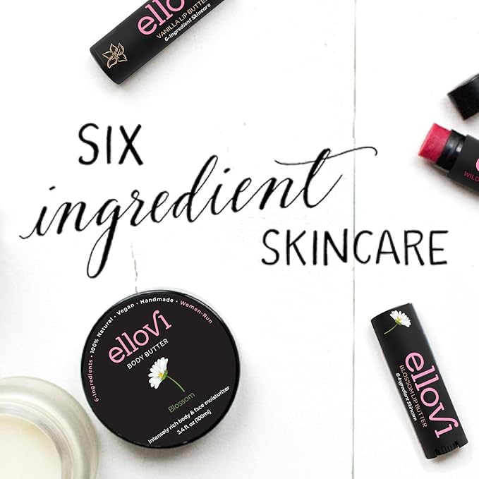 Natural Lip Butter Lip Balm - Blossom - Pure Enough to Eat - Made With Just 6 Vegan Ingredients - Moisturizing Lip Care for All Day Hydration (4-Pack)