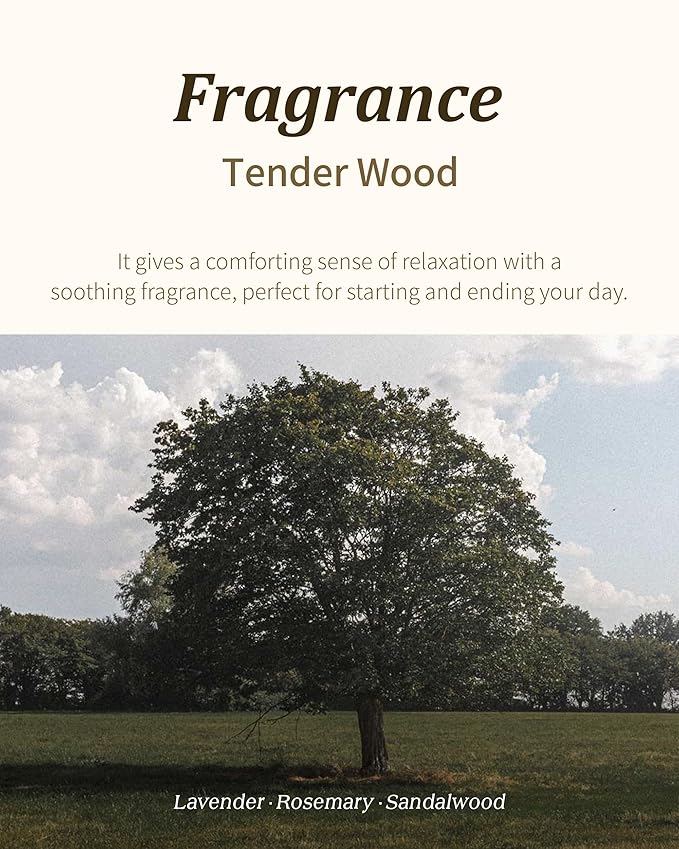 - AROMATIC FRAGRANCE - Bringing relaxation with fresh lavender and rosemary, and adding sandalwood for comfort at the beginning and end of your day