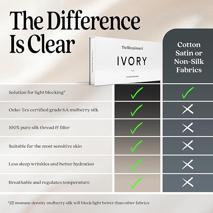 - 🔆 BLOCK OUT LIGHT - Achieve a deeper sleep with our pure silk sleep mask. An eye cover will help you get a better night’s sleep by falling asleep faster and staying asleep longer thanks to a boost in melatonin production.