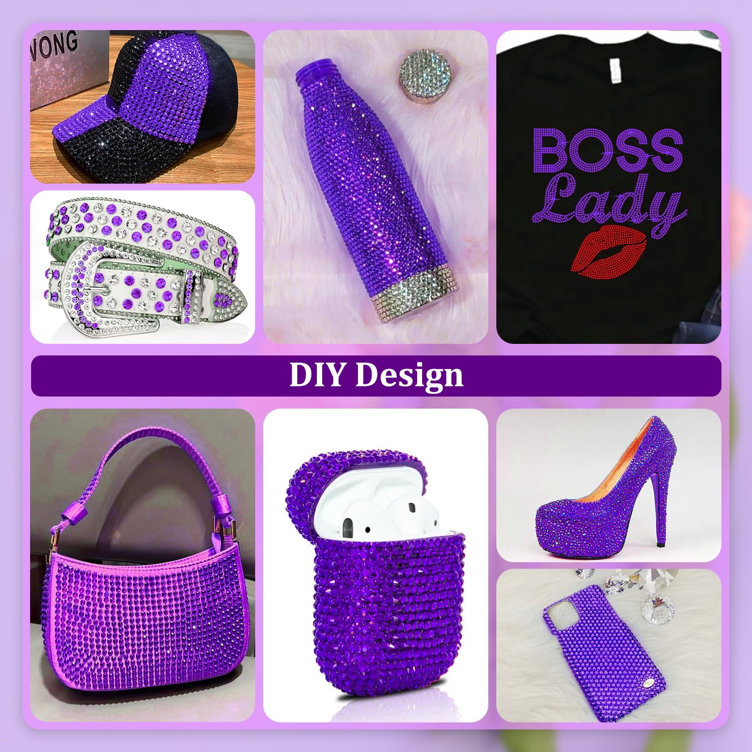 Resin Rhinestones for Crafting, 2 Boxeses Purple Multi Sizes Flatback Bedazzling Crystals for Crafts Nail Art Deco, Non Hotfix Gems Charms for Tumbler Shoes Clothing Fabric Face Makeup