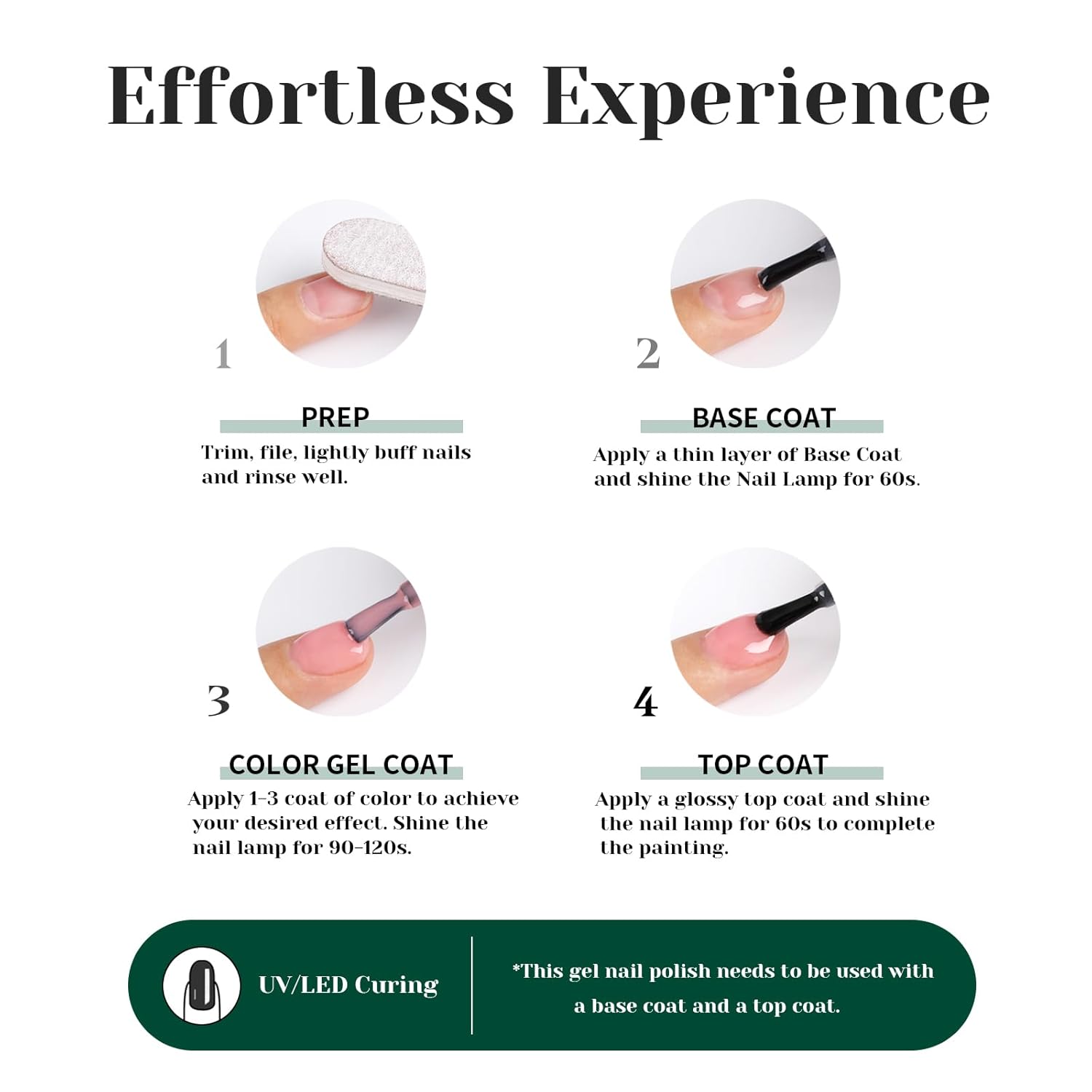 - šØSpeed Curing with LED Nail Lamp: The gel nail polish kit need to be cured under LED light. Base and Top coat required. Average for LED light 60-120 secs.