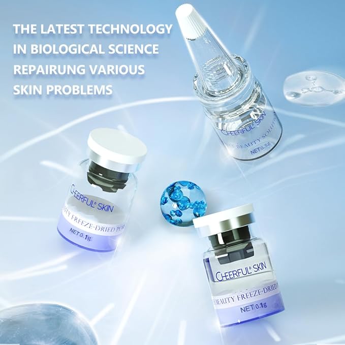 Cheerful Skin Double Beauty Set, Anti Oxidation & Aging Freeze-Dried Powder for 7 days Firming Lightening Fine Lines, Includes 7 Pairs of Powder 100mg+Solution 5ml Set, 2 Droppers