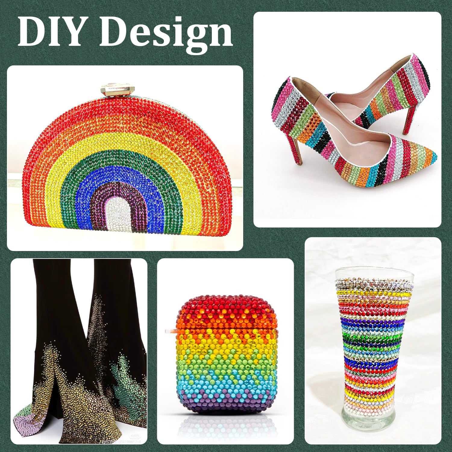 - 💚WIDE APPLICATION -- These sparkling iridescent resin crystals are perfect for creating dazzling looks. Use them for bedazzling DIY crafts like shoes, tumblers, mugs, bottles, phone cases, popsockets, scrapbooks, photo frames, diamond paintings, greeting cards, bags, glasses, guitars, keychains, hats, masks, hair clips, bracelets, wristbands, clothing, wedding dresses, and more. Apply it to what you want to bling!