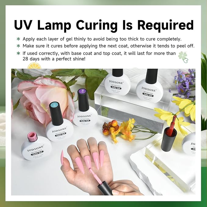 - Long-lasting and Durable: The gels can last about 28 days under the curing of the nail lamp, and still maintain a gorgeous lustre. Nail lamp and nail tools are not included in this product.