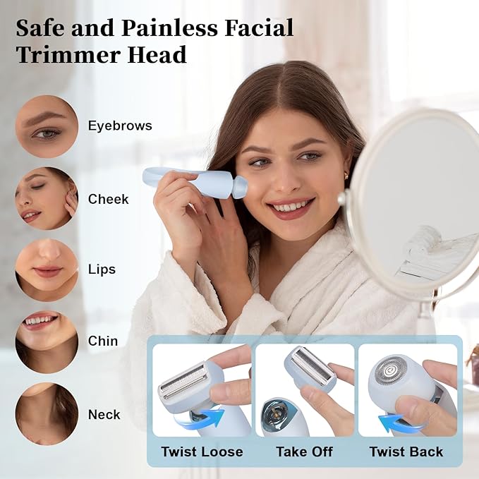 - 【2-in-1 Hypoallergenic Electric Shaver】Come with easy-to-change heads for face and body, this womens electric razor provides a smooth grooming experience. Our electric razors for women sensitive skin feature a flexing foil design ideal for the face, legs, pubic area, and entire body. Its advanced 3D floating foil and hypoallergenic stainless steel blades ensure a gentle shave without razor irritation. Say goodbye to nicks and discomfort as this shaver for women smoothly removes unwanted hair.