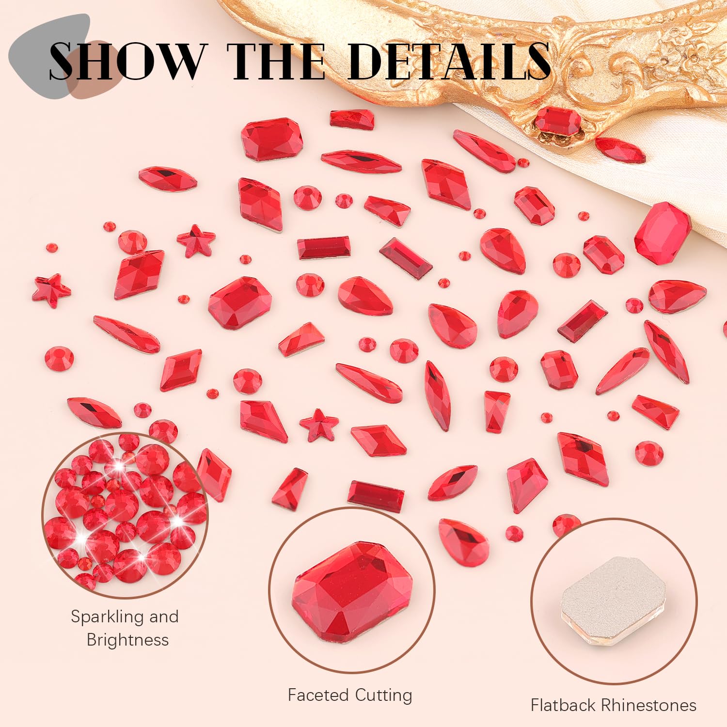 - šPACKAGE CONTENT -- The package contains 120Pcs multi shapes flatback gems crystal and 3100Pcs 1.5-4mm round beads, totally 3220Pcs Red rhinestones. Additionally, 1 tweezers for large size gems and 1 pickup pen for small size gems. This rhinestones kit makes it easy for you to make any nail art you like, and will bedazzle your acrylic nails!